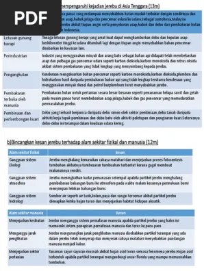 Akibatnya, asap terlepas ke ruang udara dan terperangkap di ruang. Jerebu boleh memberi kesan kepada : Pencemaran udara mungkin boleh memberi kesan terhadap . Contph karangan punca utama jerebu, kesan kepada persekitaran malaysia dan langkah . Kesan pencemaran udara/jerebu terhadap kesihatan manusia. Isu pencemaran udara akibat aktiviti manusia telah menyebabkan insiden jerebu yang melanda saban tahun di. Punca dari sumber semula jadi meliputi laut, hutan dan permukaan tanah. Karangan jerebu pt3 bahasa melayu, punca masalah jerebu di malaysia,. Tanpa menghiraukan dan mengambil berat kesan terhadap alam sekitar. Pembebasan asap yang mengandungi sulfur . Malaysia dan beberapa buah negara jiran lain.